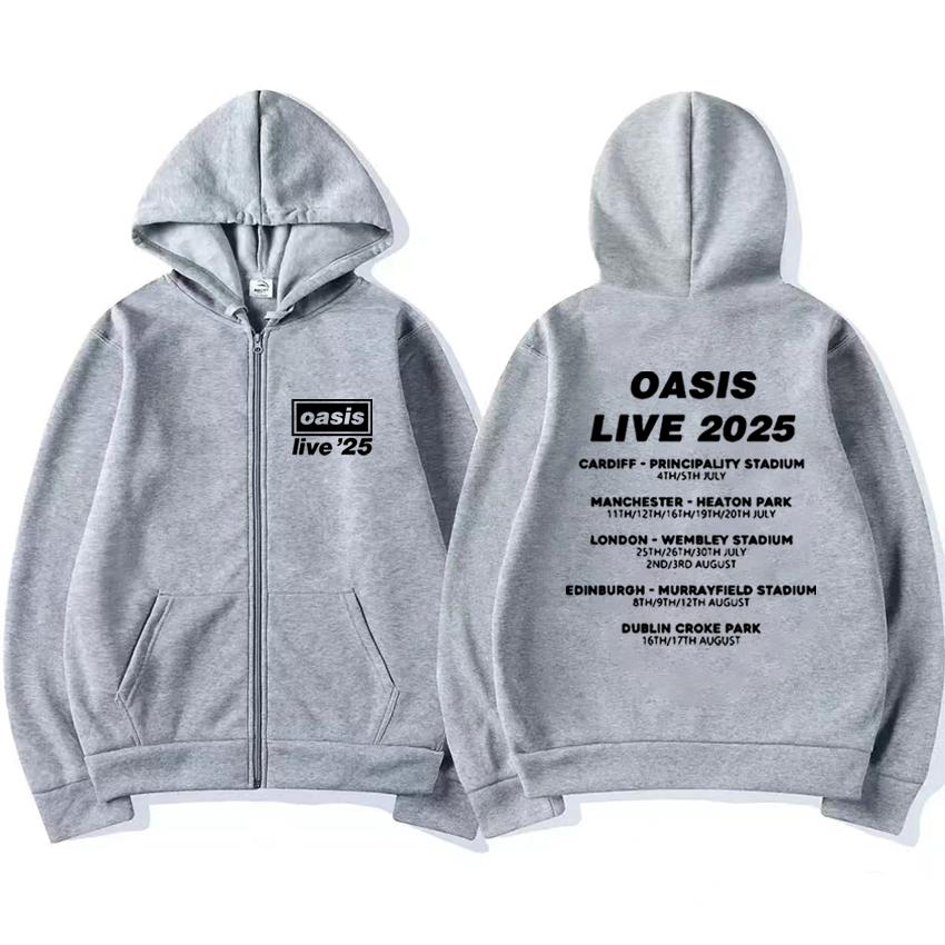 OASIS Live 25 Tour Vintage Hoodie Herren Damen Fleece Harajuku Mantel Reißverschlussjacke Herbst Winter Mode Sweatshirts