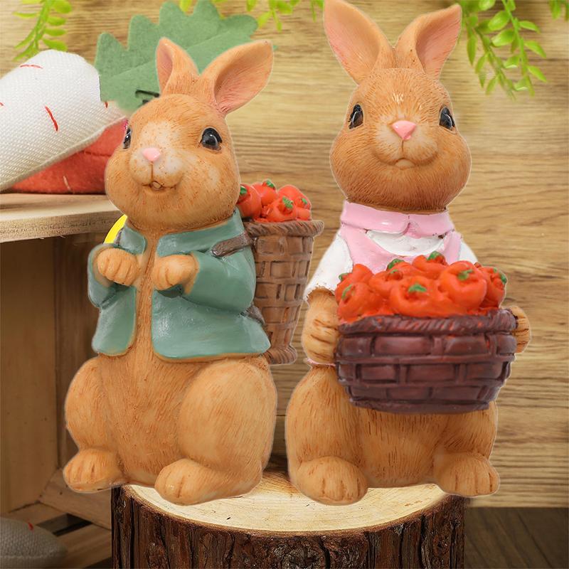Osterhasen Dekorationen Frühling Innen- und Außendekor Harz Hasenfiguren Statue mit Karottenkorb Tischschmuck