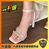 Premium open-toed white rhinestone one-word with high-heeled sandals women's summer square-head stilettos