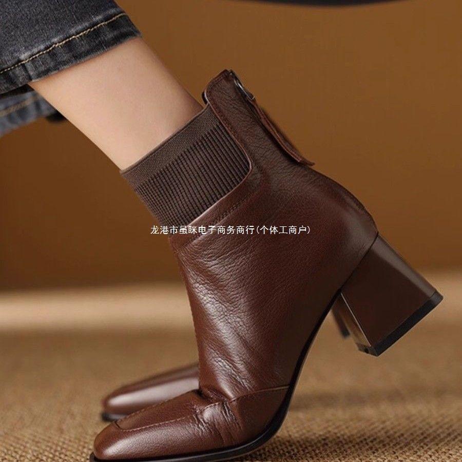 Riesig und dünn~ Französische Retro-Strick-Kurzstiefel für Damen Herbst und Winter 2025 mit dickem Absatz, Martin-Stiefel mit eckiger Spitze, dünne Stiefel
