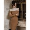 Off-the-shoulder dress, autumn and winter temperament, slim-fitting hip-wrapped long dress, split-ended knitted primer, sweater, skirt