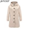 BITCED Autumn/Winter Water-Repellent Hooded Trench Coat Women's Casual Long Coat Loose Fit Plus Size Outdoor Rainwear