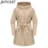 BITCED Women's Spring/Autumn Hooded Water-Resistant Jacket with Belted Waist Lightweight Casual Oversized Trench Coat