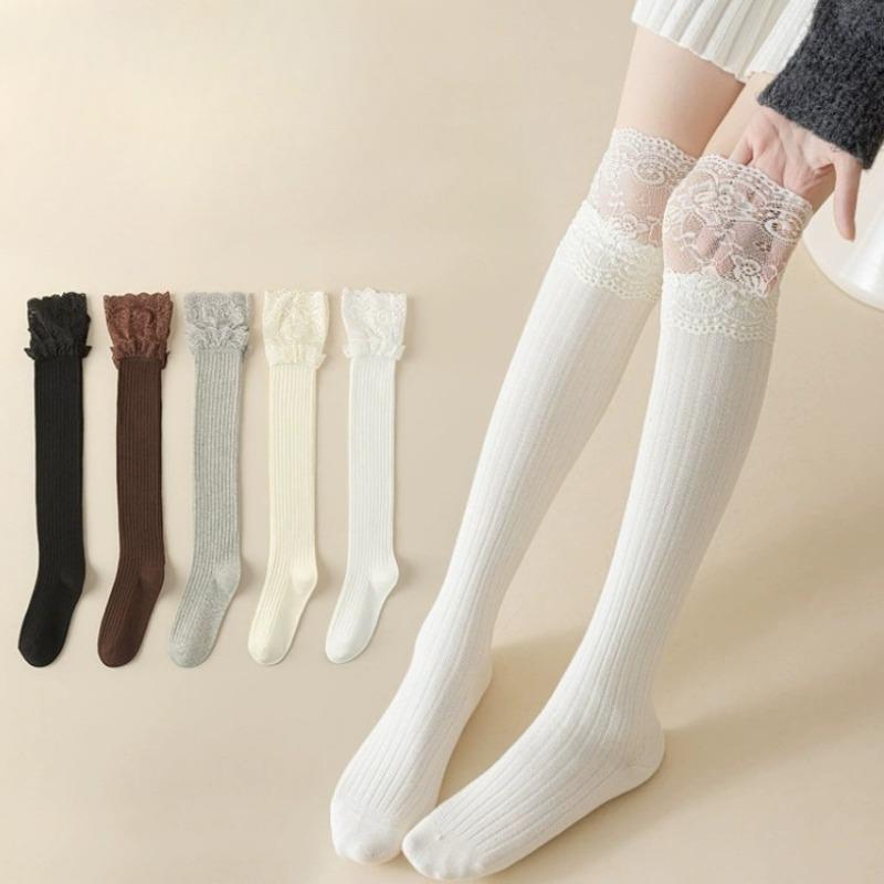 Long Thigh-high Socks for Spring and Autumn, Women's Lolita Black and White Lace Calf Socks, Lace Long Socks