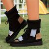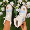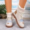 Beige & Blau Karierte Klobige Niedrige Absatz Schnürstiefeletten - Runde Zehenpartie Lässig Winter mit Sohle & Obermaterial aus Stoff