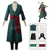 Anime Figuren Roronoa Zoro Cosplay Kostüm Uniform Grüner Mantel Hose Kopftuch Roronoa Zoro Perücke Ohrringe Halloween Männer Kleidung
