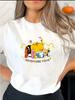 Adventure Time Cartoon-Figuren-Print Lässiges T-Shirt für Damen Strick-Polyester-Gewebe mit Elasthan Rundhalsausschnitt Kurzarm