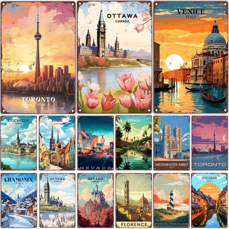 Retro Metal Sign Travel The World VENICE CANADA TORONTO Vintage Poster Home Bar Room Pub Cafe Club Hotel Wall Decor Plate