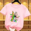 New Labubu Children's T-shirt Scarf LABUBU and Flower Pattern Girl Round Neck Short Sleeve Casual Versatile Clothing