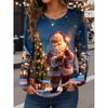 Weihnachten Damen T-Shirt Grafik Weihnachtsmann Vintage Mode Stilvoll Langarm Rundhals Regulär Oberteile Täglich Wochenende