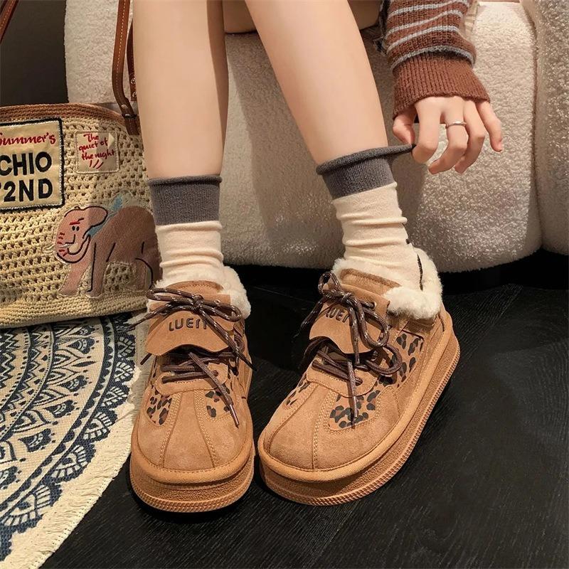 Retro Leopardenmuster Klapphülle Deutsche Trainingsschuhe Damen 2025 Herbst Ost Neu Vielseitiger College-Stil Samt Verdickt Lässige Board-Schuhe
