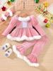 Baby Weihnachtsset Langarmkleid+Hose+Stirnband Dreiteiliges Set