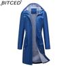 BITCED Spring/Fall Long-Sleeve Casual Trench Coat for Women Water-Resistant Hooded Solid-Color Top Striped Lining Straight-Cut Jacket