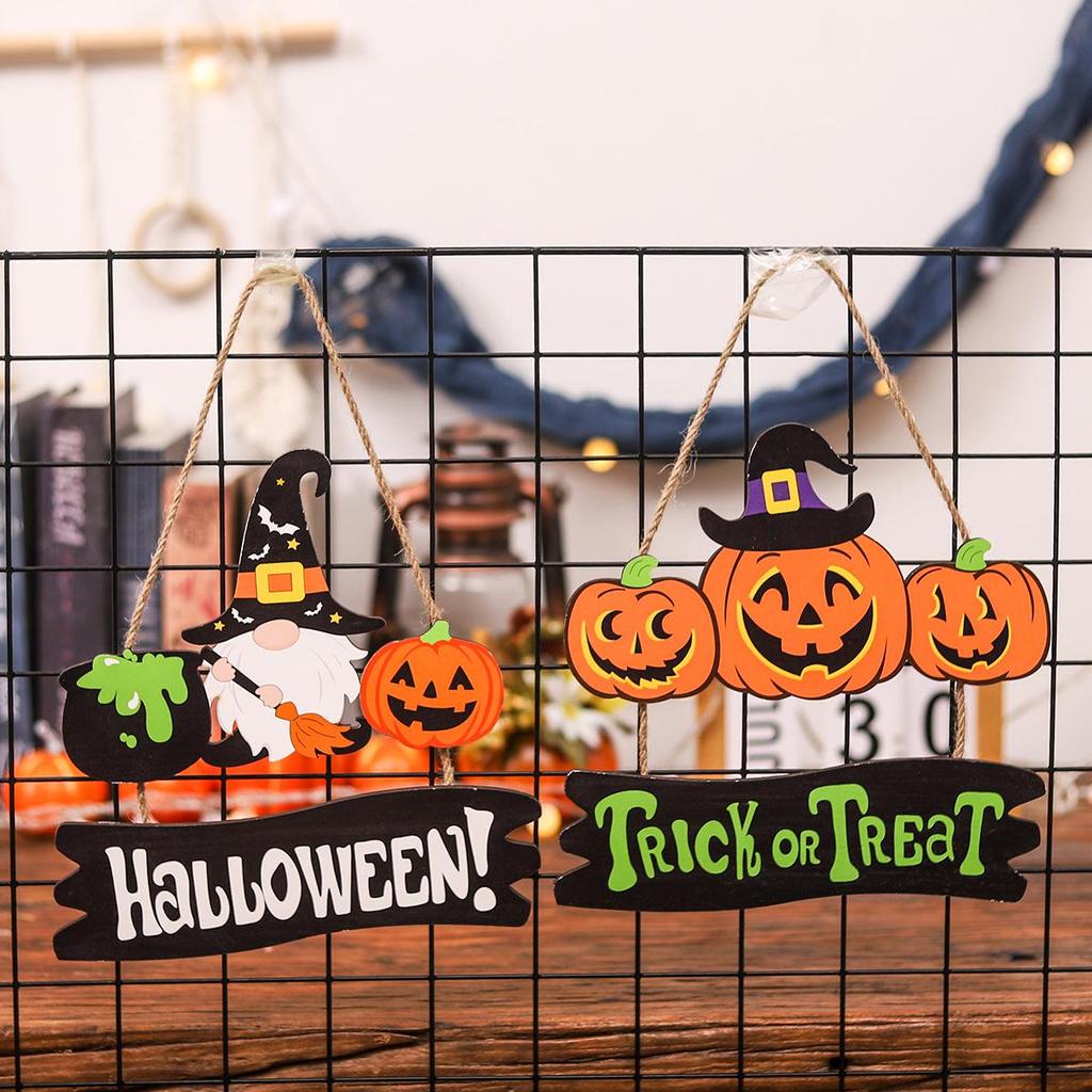 Wöchentlich Neues Halloween Holz Smiley Kürbis Türschild - Cartoon Wichtel Aufhänger für Heimparty Deko.