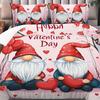 Valentinstag King Bettbezug Romantisches Bettwäsche-Set Kawaii Paar Wichtel Bettdeckenbezug Rosa Rosen Herzen Polyester Steppdeckenbezug