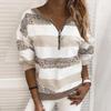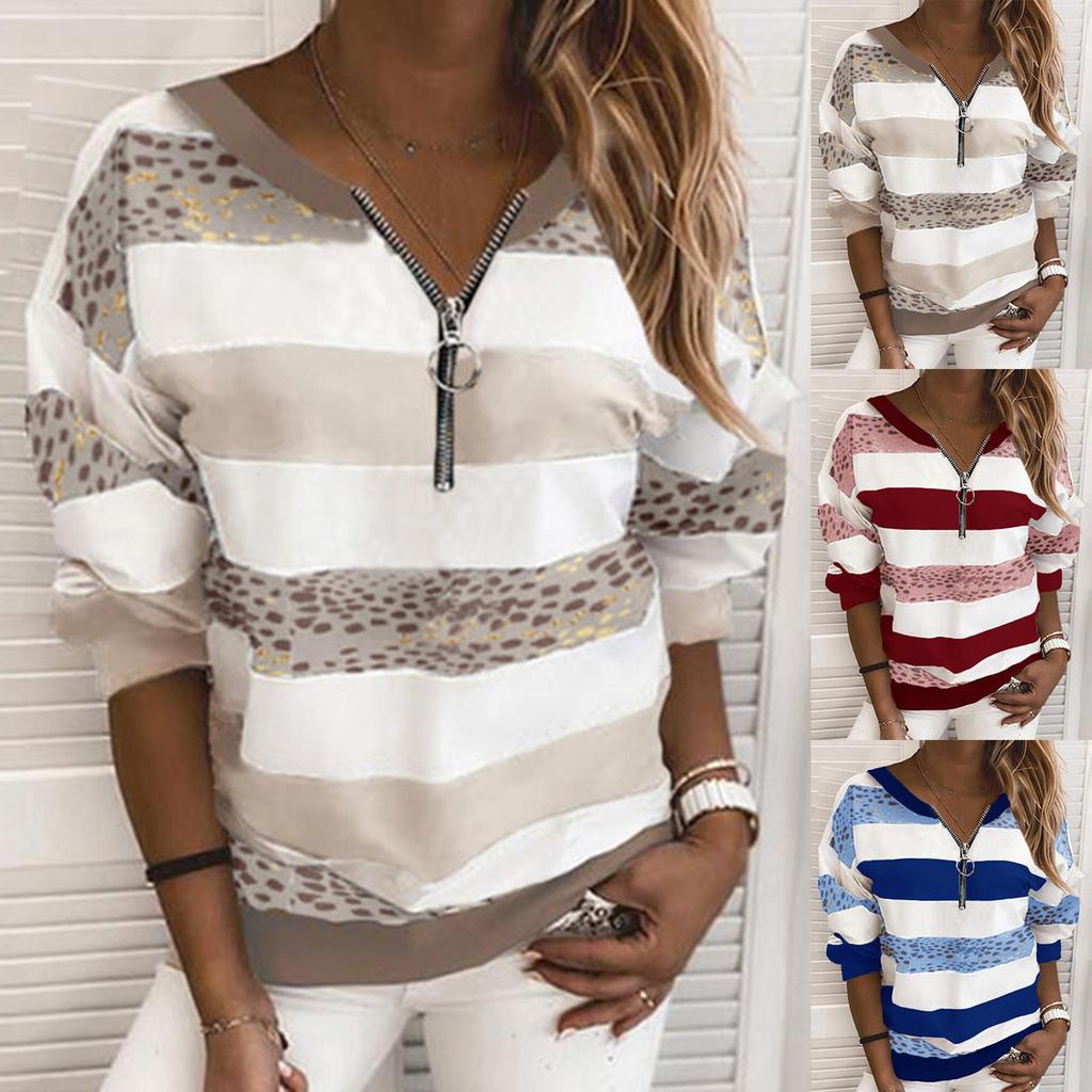 Hoodies Damen Streifen Leopard Patchwork Sweatshirt Reißverschluss Langarm Bluse Pullover Damenbekleidung Street Wear