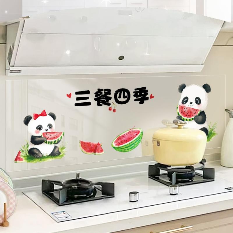 Küche Selbstklebende Ölbeständige Wandaufkleber Niedlicher Panda-Druck Öl Rauch Beständig Fliesenaufkleber Beweis Wasserdichte Tapete