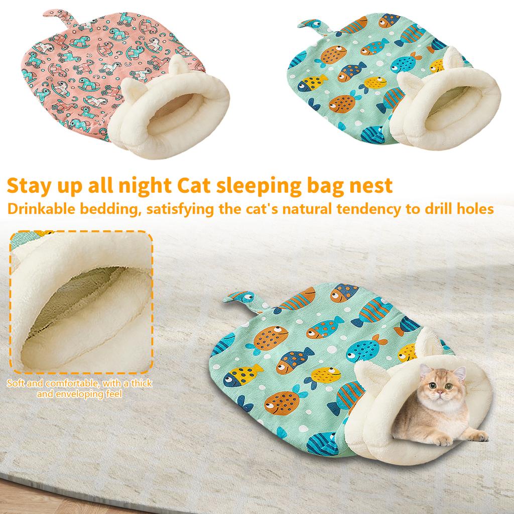 Cat Sleeping Bag For Indoor Cats Comfortable Cat Winter Sleeping Bag Soft Plush Cat Bag Self-Warming Cat Bed Cave Cat Tunnel Soothing Sleeping Bag