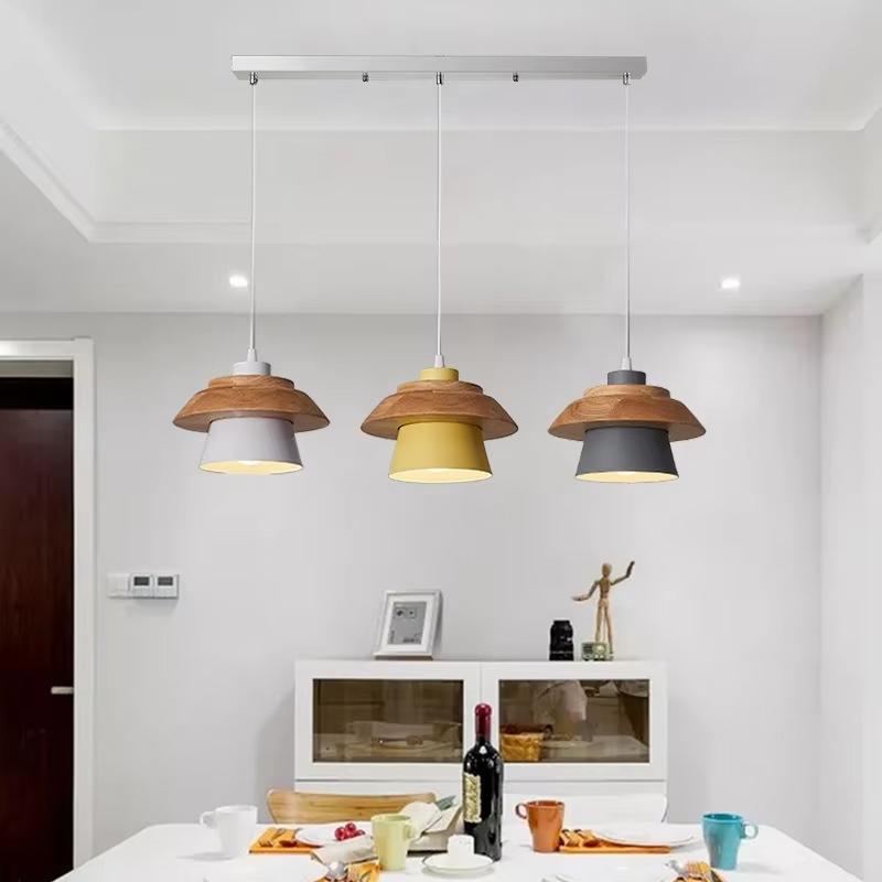Modern Wood Pendant Light Nordic Macaron Colorful Minimalist Hanging Lamps Living Room Bedside Coffee Indoor Decoration Lighting