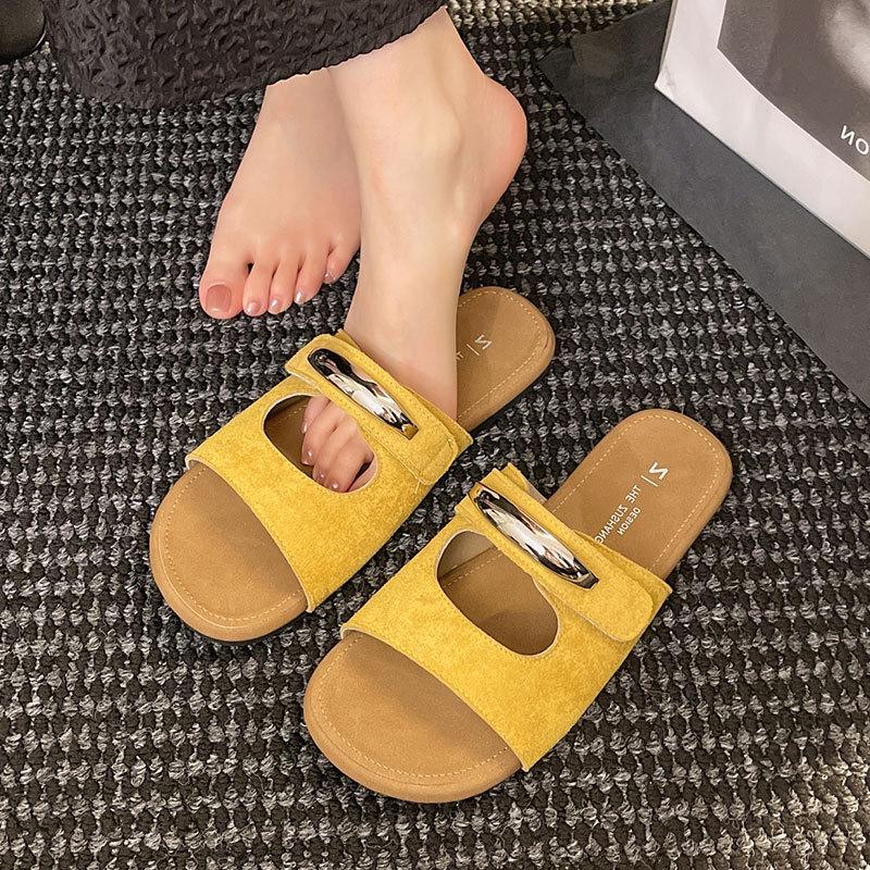Klett-Hausschuhe für Damen zum Tragen 2025 Sommer neue Modelle mit Röcken, schöne Ein-Wort-Schlappen mit weicher Sohle, rutschfeste Strandschuhe