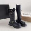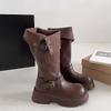 Gürtelschnallenstiefel Damen 2025 Herbst und Winter neu Retro Explosion Maillard Erhöhung Britische Plateaustiefel Ritterstiefel