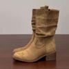Weiches Leder, Martin-Stiefel, kleine innenliegende höhenerhöhende Stiefel, Damen 2025 neue Herbst Dicke Ferse Mittelhohe Stiefel, Stiefel zum Stapeln