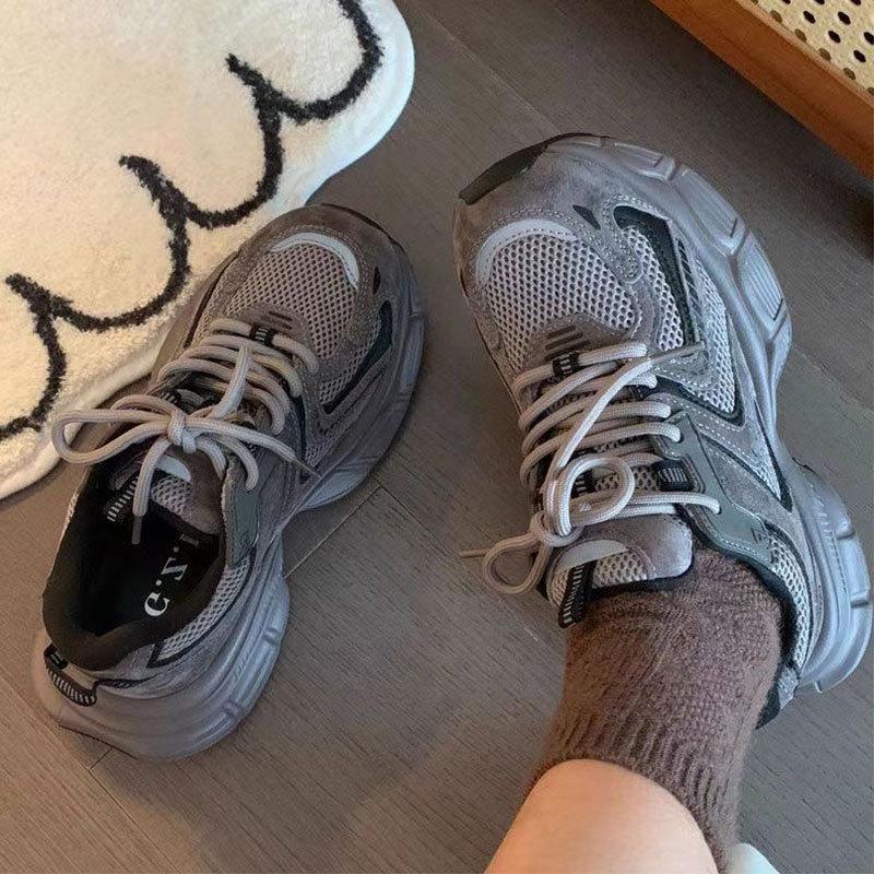 Leichte und atmungsaktive vielseitige Sport- und Freizeitschuhe für Damen für Frühjahr und Herbst 2025, neue koreanische Version mit erhöhter Plattform, Dad-Schuhe für