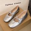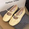 Temperamentvolle quadratische Schleife flache Einzel Schuhe Damen 2025 Frühling Pendeln flacher Ausschnitt weiche Sohle plissierte Ballerina Mary Jane Schuhe
