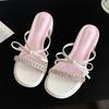 Silberne Sandalen Frau 2025 neuer Sommer Schleife Französischer Feenwind coole Hausschuhe dicke Absätze hohe Absätze
