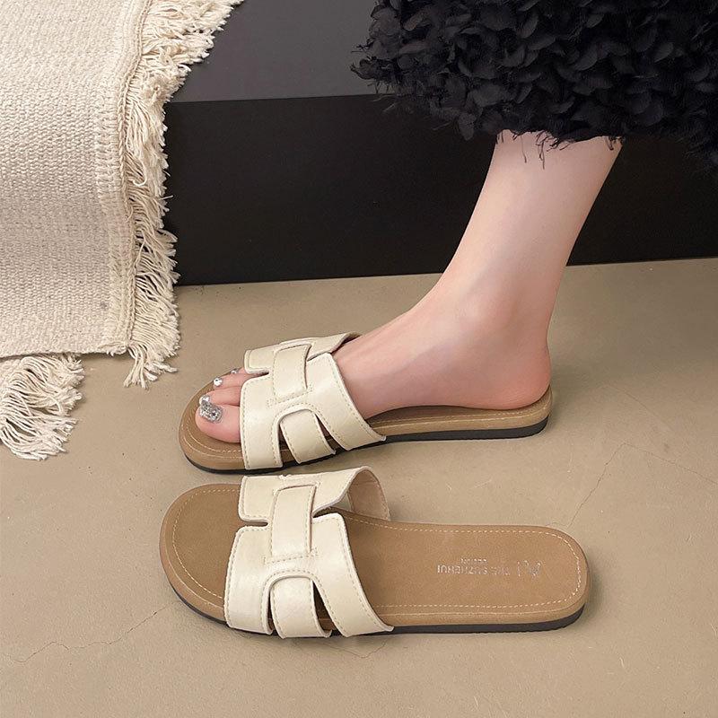 Internet-Berühmtheit weichsohlige coole Hausschuhe Damen tragen 2025 Sommer neue Strandschuhe Feenstil mit Rock flache Sohle Ein-Wort