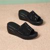 Keilabsatz coole Hausschuhe Damen Sommer 2025 neu Muffin Pailletten Mode Damenschuhe Mopp tragen Plateau High Heel Ein-Wort Mopp