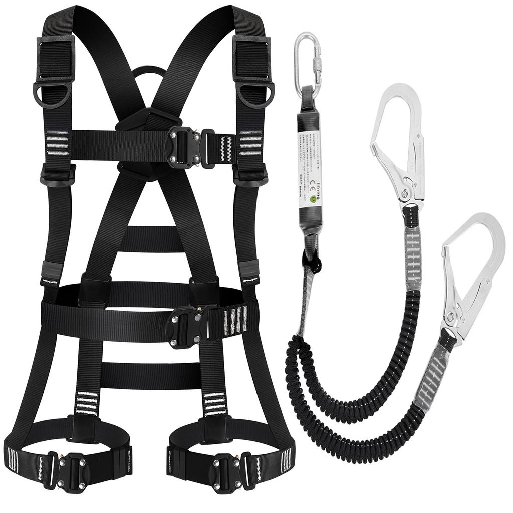 Lifning Safety New Standard Fall Arrest Adjustable Size Full-Body Harness, Set, Device, (Black)