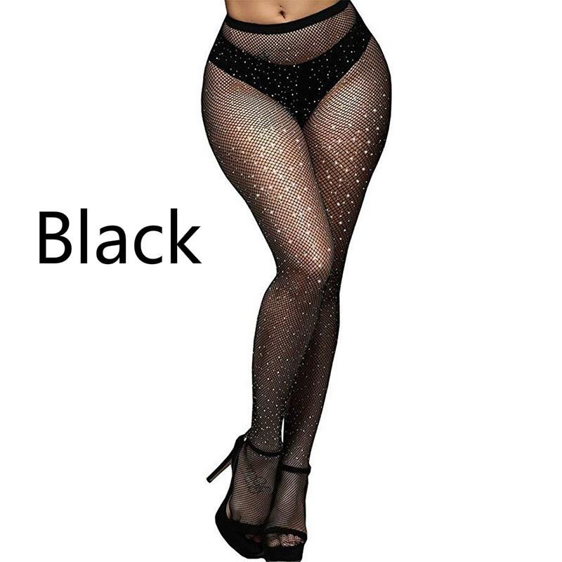 Weihnachtsgeschenke Neue Mode frauen Kristall Strass Elastische Schwarze Strümpfe Fischnetz Strumpfhosen Unterwäsche Femmes Bas Strümpfe
