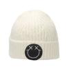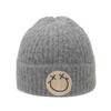 Strickmütze mit Smiley-Gesicht für Damen, Herbst und Winter, verdickt, warm, Pullovermütze, Radfahren, großer Kopfumfang, Pullovermütze, locker, Kältemütze für Damen