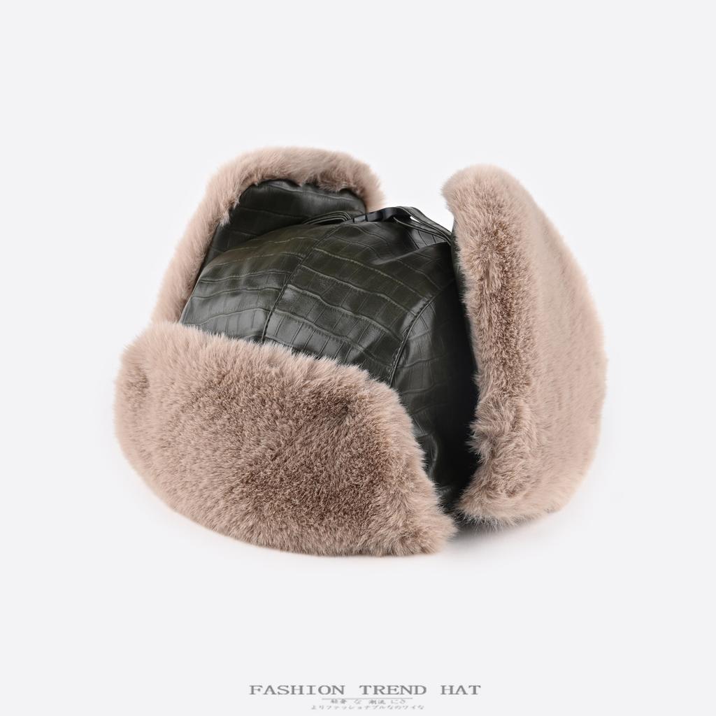 Leder-Pilotenmütze für Herren und Damen, verdickte warme Wintermütze zum Radfahren mit Ohrenschutz, Lederverschluss, Lokomotiv-Kälteschutzmütze, feuchtigkeitsabweisend