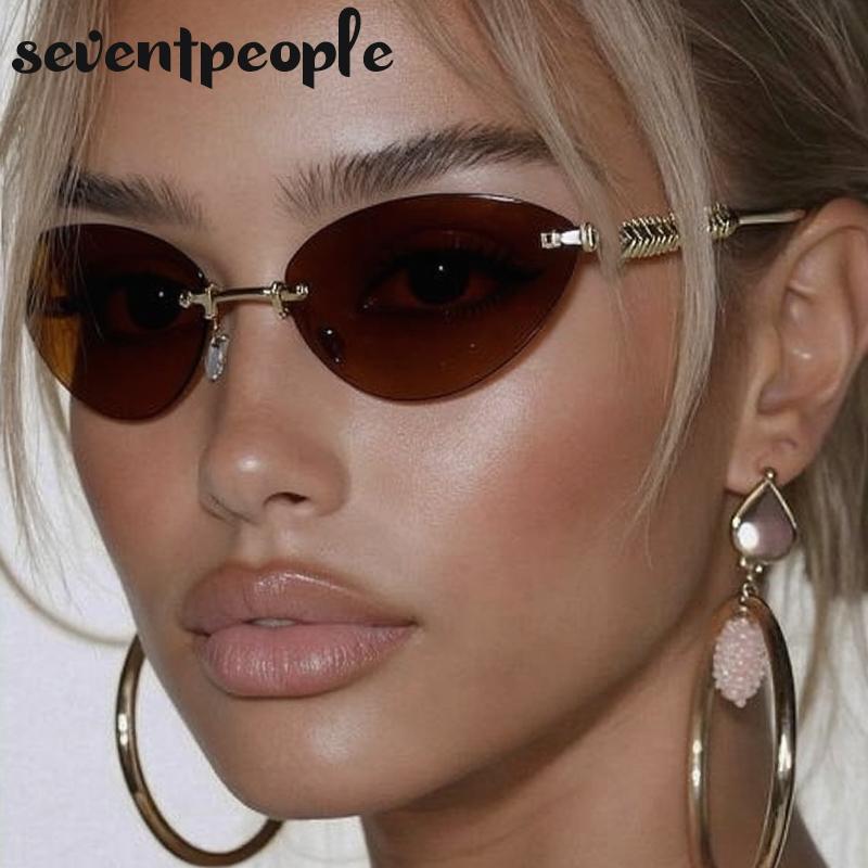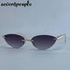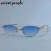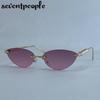 Small Frame Sexy Cat Eye Sunglasses Women Luxury Brand Trendy Steampunk Rimless Sun Glasses Vintage Metal Punk Shades UV400