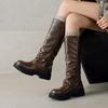 Designgefühl Leder runde Spitze dicksohlige Hosenstiefel Damen 2025 Herbst und Winter neue Modelle aber Kniestiefel Seitenreißverschluss hohe Stiefel