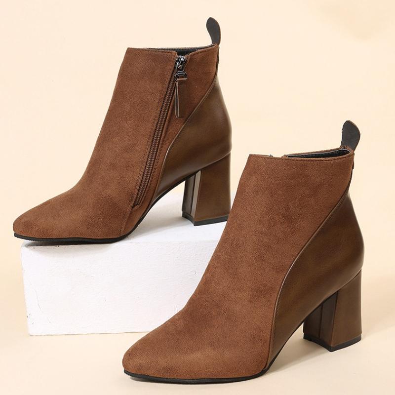 Neue Damen Stiefeletten Luxus Wildleder Stiefel für Damen Spitz Zehenbereich Seitlicher Reißverschluss Kurze Stiefel Modedesigner Damen Hohe Absätze