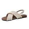 Sandalen mit flacher Sohle Damen 2024 neu Sommer Retro Ethno Fee Wind Wind Strand Draußen Hausschuhe
