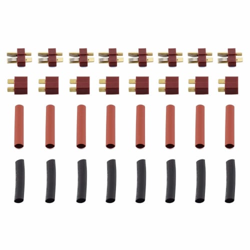 CM Hardware 8 Pairs Male & Female T-Type Adapter with Red and Black Shrink Tube for RC LiPo Battery, Max Current 120A