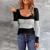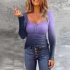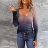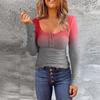 Farbabstimmung Farbverlauf T-Shirt Damen Rundhals Pullover Knopf Langarm Mode Slim Top