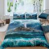 Leuchtturm Bettbezug Set Nautisches Surfen Ozeanwelle Bettwäsche Set Queen Polyester Küsten Natur Thema Steppdeckenbezug Für Jungen
