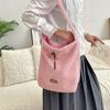 112 gentle milk powder color plush bag fashion shoulder messenger bag autumn and winter new commuter double-sided canvas bag