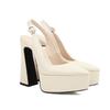 FOREADA Damen Slingbacks PU Leder Sandalen Plateau Super Hohe Hufabsätze Spitzschuh Sexy Party Sommerschuhe Beige 35-43