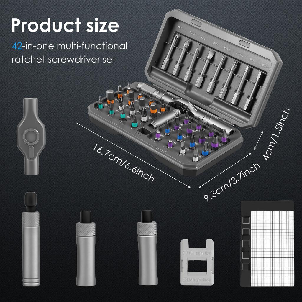 42 IN 1 Magnetic Screwdriver Set DIY Ratchet Screwdriver Set Multi Bit Drive Set with Detachable Handle Time Saving for Furnitur