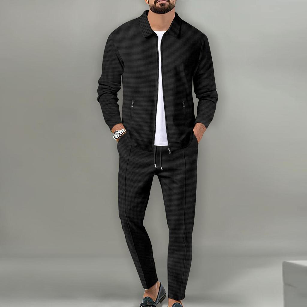 2024 Herren Herbst Slim Waffeljacke mit Reißverschlusstasche & Revers