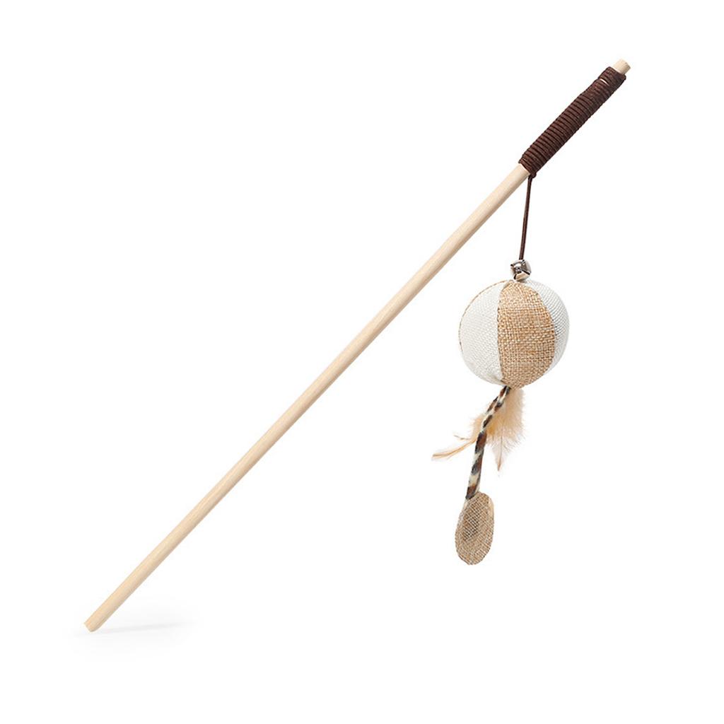 Cat Teaser Wand Wooden Teaser Stick Interactive Claw Grinding Wand Toy Durable Interesting Funny Cat Stick for Indoors