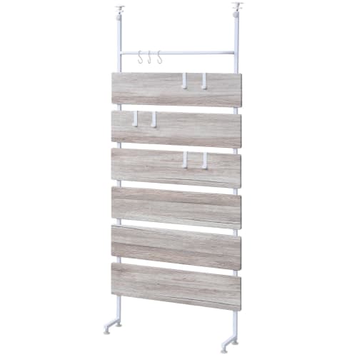 Yamazen Tension Partition (Wooden Panel Type), 80cm Wide x 18cm Deep x 200-260cm High (Includes 6 Metal Hooks and 3 S-Hooks), Wall-Mounted Storage, Ce
