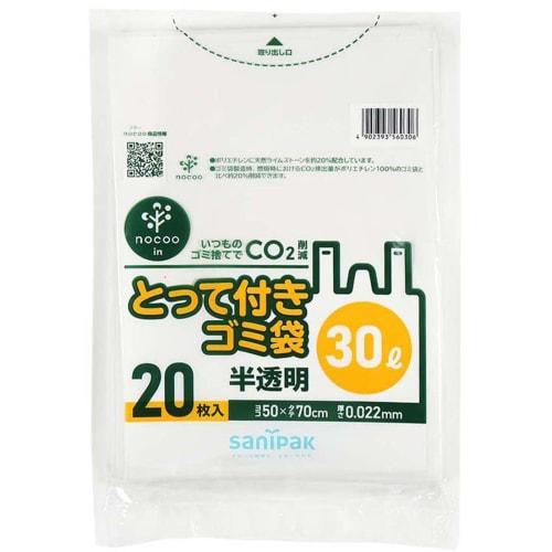 Japan Sanipack nocoo in Semi-Transparent Garbage Bags, 30L, with Handles, Easy to Tie and Carry, CO2 Reduction, 20 Bags, 50cm x 70cm, 0.022mm Thick, C