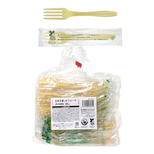 Strix Design Disposable Forks, Biomass, Made in Japan, 100 Pieces, 16cm, Natural Rice Forks, Individually Wrapped, Eco-Friendly, Commercial Use, SD-93
